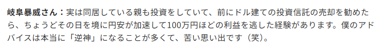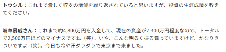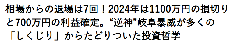 しかし、岐阜暴威氏は投資家にとって非常に価値ある「生きた教材」です。