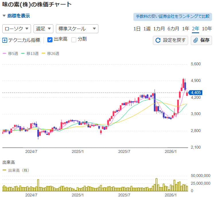 一方で、味の素のビジネスモデルの堅実性は極めて高いものの、原材料の外部調達コストに業績が左右されやすい側面もあります。