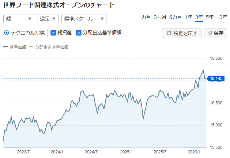 世界フード関連株式オープンは、フードテックの先端技術だけでなく、食を支える伝統的な優良企業も組み入れているため、比較的安定した運用が期待できます。