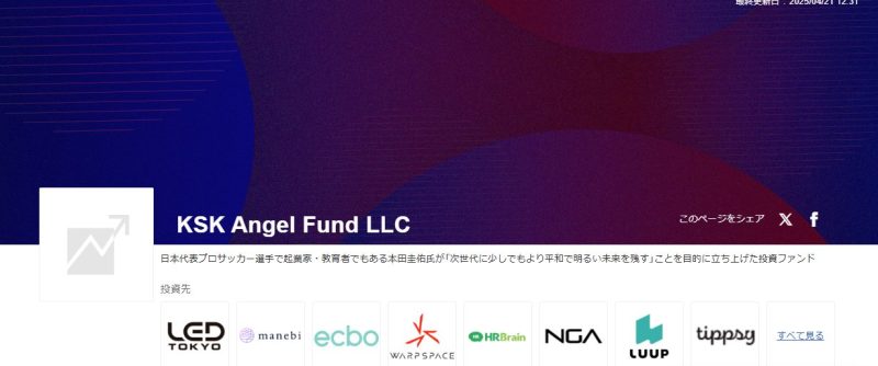 KSK Angel Fundは、2016年に本田圭佑氏が立ち上げた投資ファンドです。