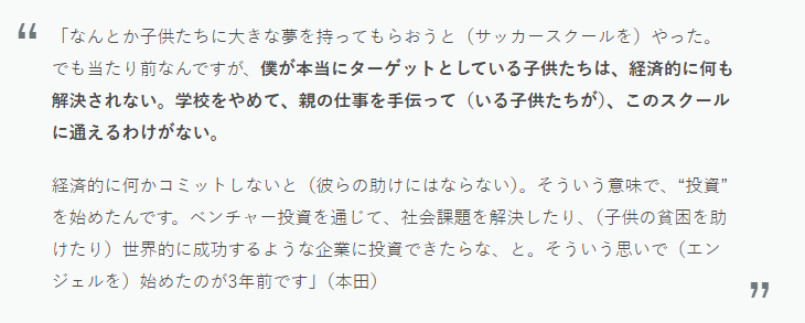 本田圭佑の投資哲学「お金は社会を変える投票」