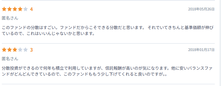 一方で、否定的な意見の筆頭は「信託報酬」です。