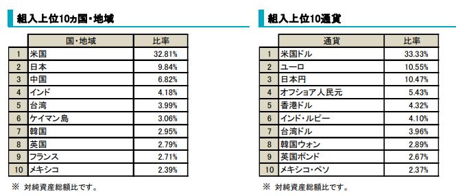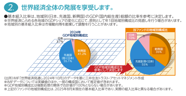 GDPベースで配分するため、中国やインドなど、新興国の比率がオルカンより高くなっています。