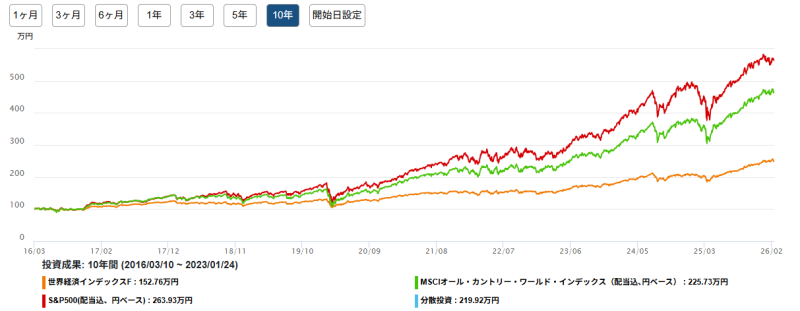 「オルカン」や「S&P500」との推移を比較