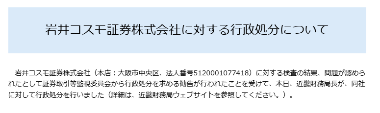 2017年、岩井コスモ証券は「未公開のレポート情報を特定顧客に漏らして勧誘した」として行政処分を受けています。