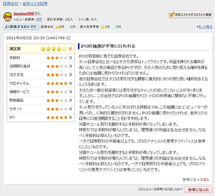 岩井コスモ証券の口コミを見ていくと、評価はかなり分かれます。