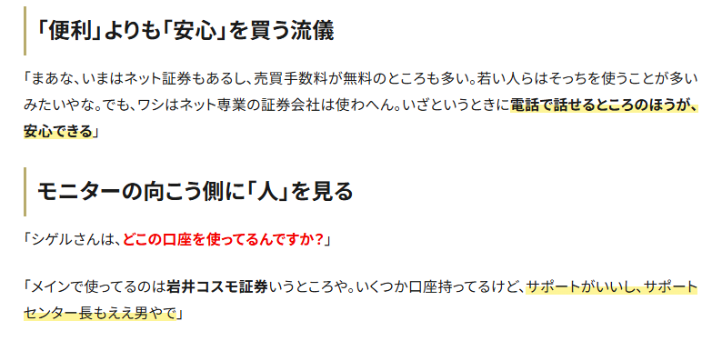 そして普段はネット取引が中心でも、いざというときに電話で手厚いサポートを受けたいと考える人などです。