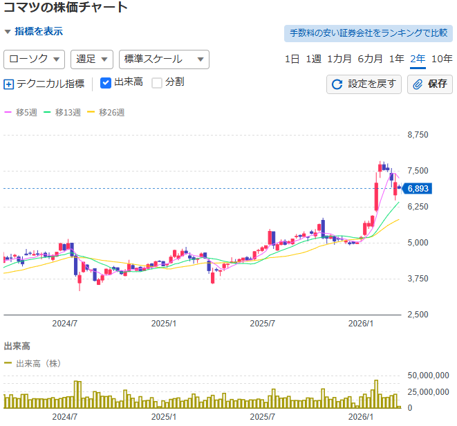 コマツは建設機械で世界2位のシェアを誇り、日本の国土強靭化プロジェクトにおいて不可欠な存在です。