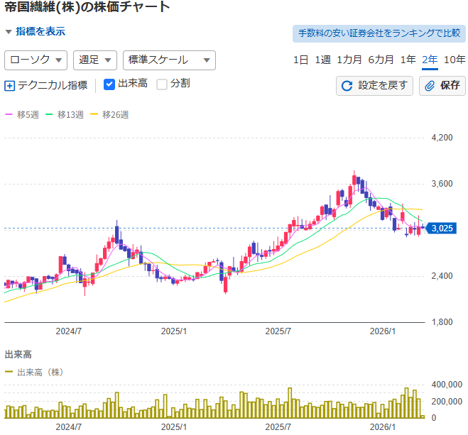 一方で、帝国繊維の業績は、官公庁の予算執行タイミングに強く依存します。