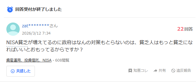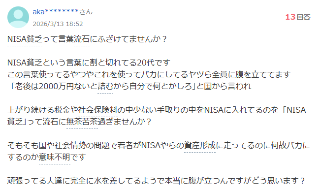 NISA貧乏とか馬鹿するなと怒りの声