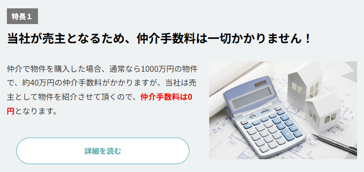 通常、2,000万円の物件なら70万円以上かかる仲介手数料ですが、日本財託の場合は直接売主となるため、仲介手数料がが「0円」になります。