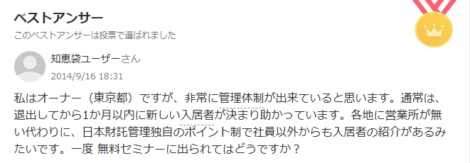 むしろ実態としては、他の管理会社のずさんな管理に疲弊したオーナーが日本財託へ管理移管してくるケースの方が多いとされています。
