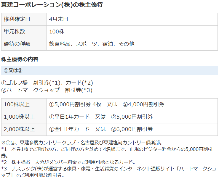 東建コーポレーション(1766):建設・不動産大手は優待の種類が豊富【4月末権利確定】