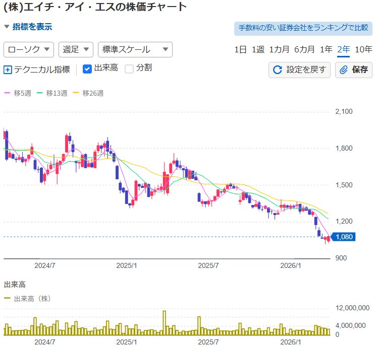 エイチ・アイ・エスの株価は景気に敏感なため、優待だけ見るのでなく、国内景気や為替動向をよく見極めて投資判断したいところです。