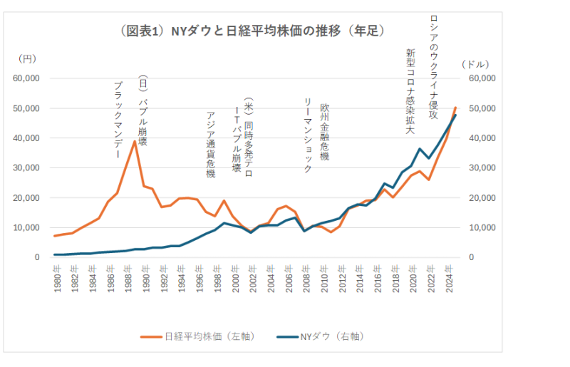 過去を振り返ると、これまでにも何度か株式相場が大きく下げた局面がありましたが、ずっと下がり続けたわけではありません(図表1、図表2)。