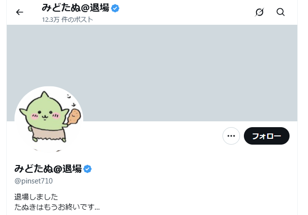 みどたぬ氏はXで「退場」を宣言します。