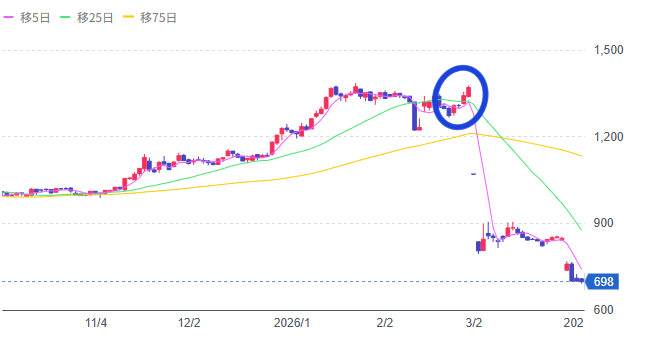 ダイドーリミテット側の「配当半減・優待廃止・ビットコイン購入」という予想だにしない三連砲に加え、最悪のタイミングで地政学リスクが直撃。