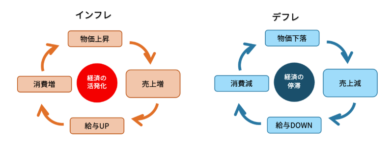 インフレ(インフレーション)とデフレ(デフレーション)の違いを整理すると、その「厄介さ」がより明確になります。