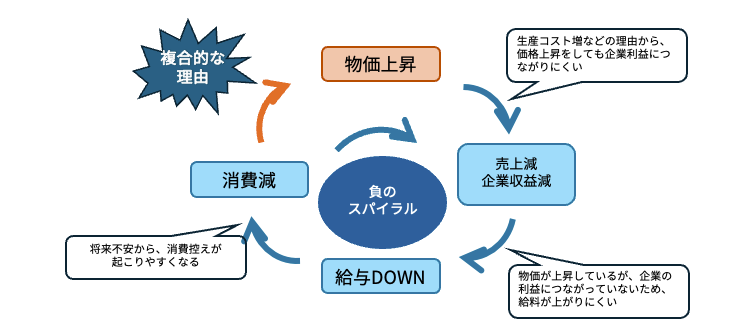 スタグフレーション下では、原材料費などのコスト上昇と消費の低迷が重なり、企業の利益が圧迫されます。