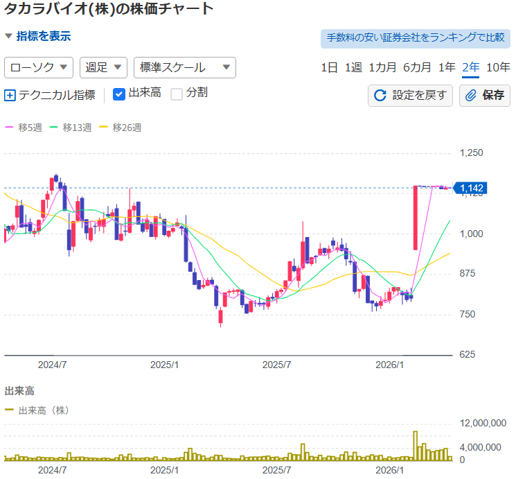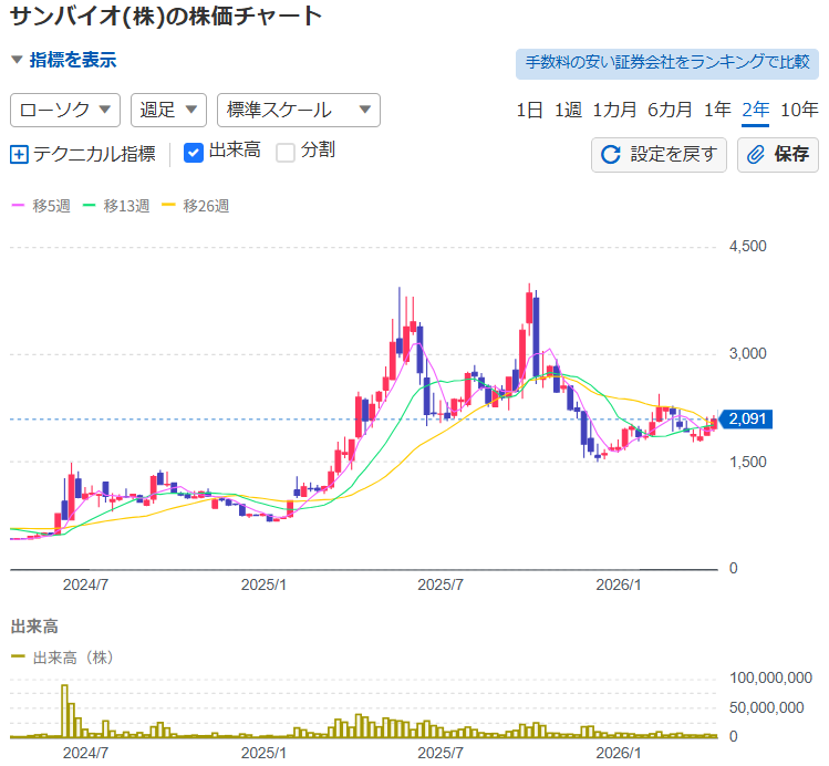 国内での承認取得に向けた動きが株価の強力な支持要因となっており、バイオセクター全体を象徴する銘柄ともいえます。