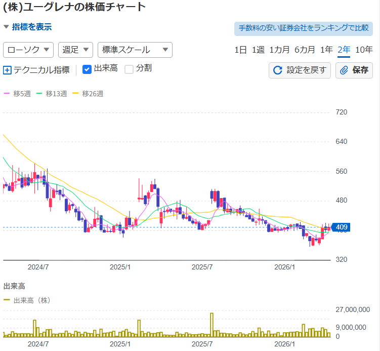 東証グロース市場 出所:Yahoo!ファイナンス 2026年4月17日時点