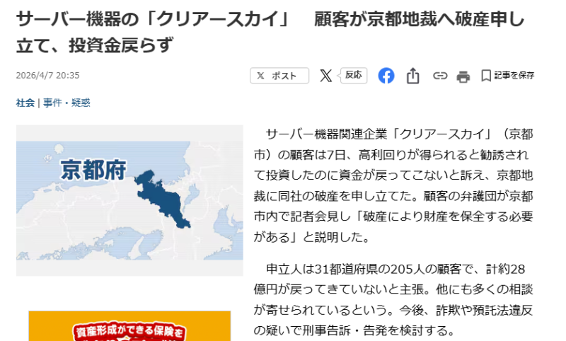クリアースカイの「サーバー投資」は、いまや大規模な詐欺疑惑の渦中にあります。