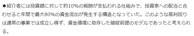 さらに深刻なのが、実態が伴わない「自転車操業(ポンジスキーム)」の疑いです。